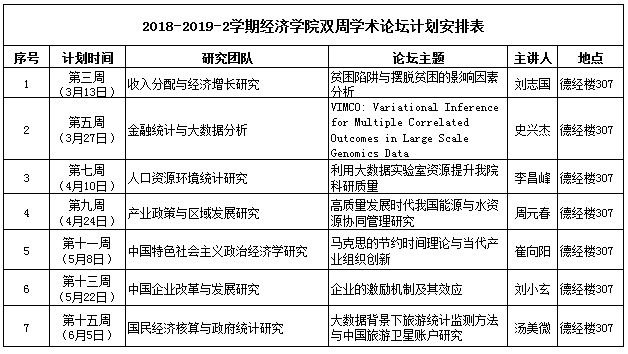 2018-2019-2学期永利14m在线登录官网双周学术论坛计划安排表