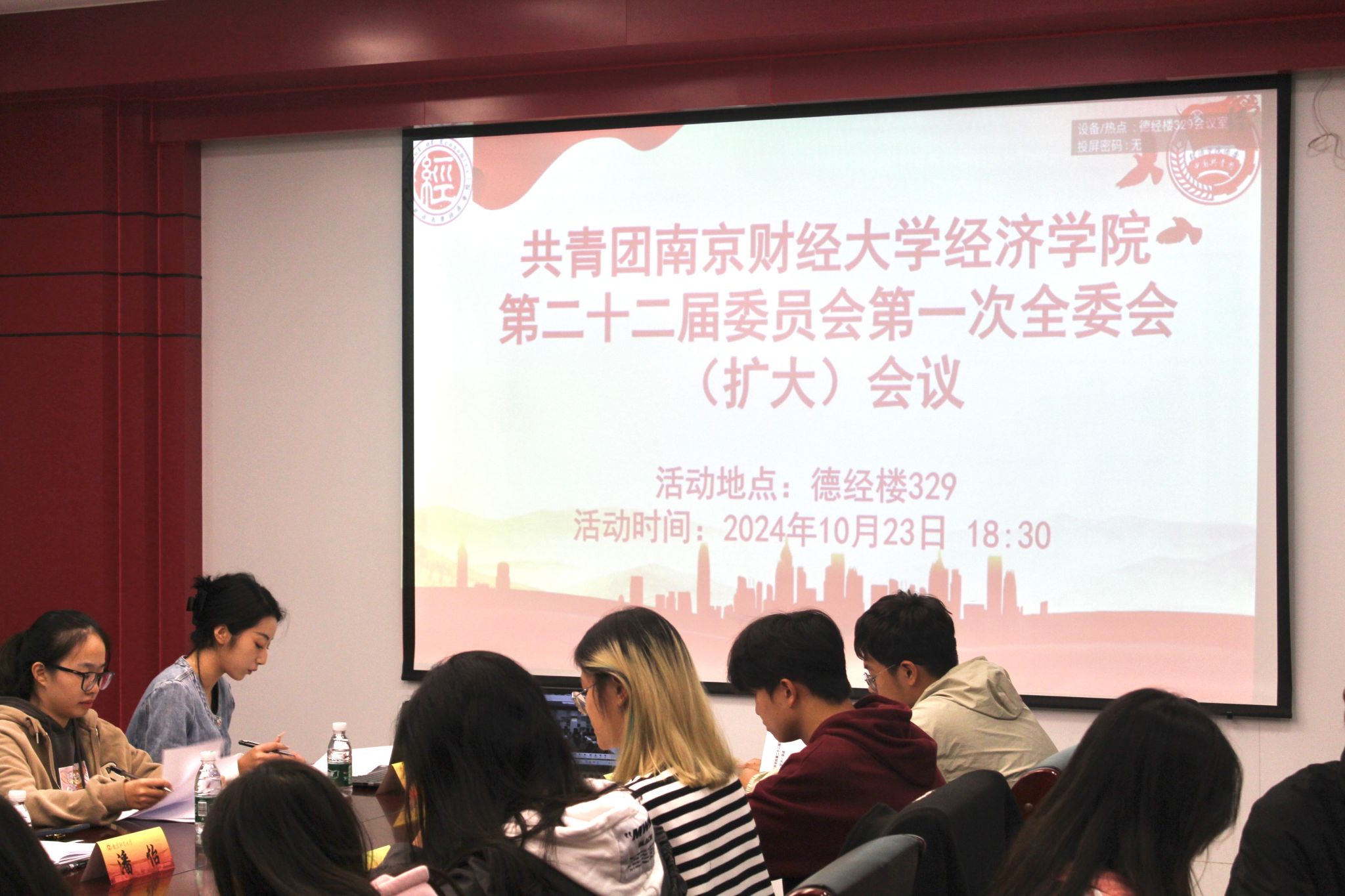 10月23日晚,共青团永利14m在线登录官网第二十二届委员会第一次全委(扩大)会议在德经楼329召开。院团委书记潘怡、院团委全体、2021级至2024级团支部书记参加会议。
