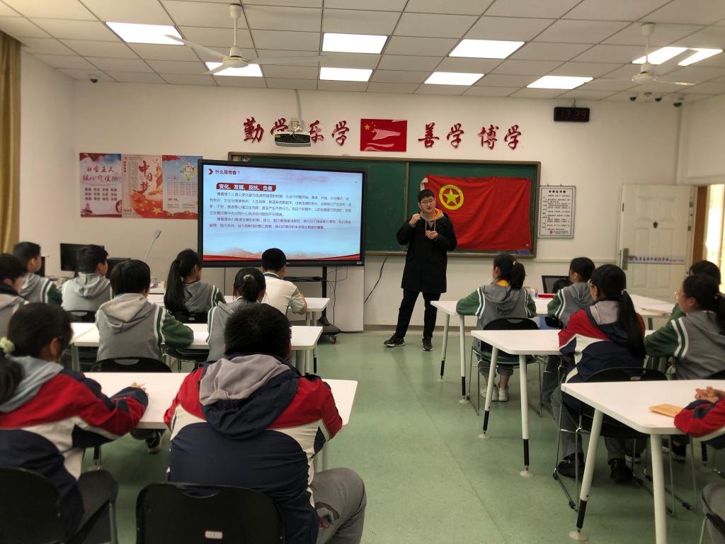 3月29日下午,永利14m在线登录官网研究生党支部受邀前往秦淮外国语学校教育集团十八中校区,为21名入团积极分子讲授“奋斗·青春”主题团课。