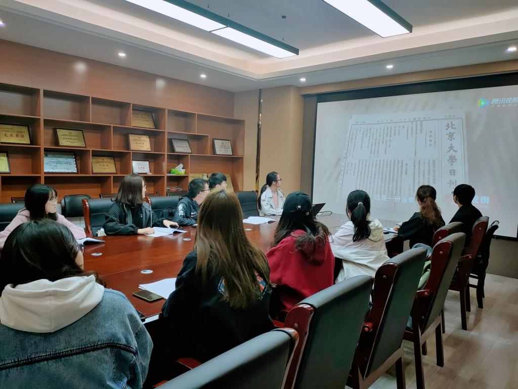 梁老师结合校团委党史学习教育文件精神要求,将永利14m在线登录官网分团委近期“学党史、强信念、跟党走”党史学习教育进展情况进行了总结汇报。然后根据院分团委党史学习教育任务分解表,从团支部衔接、学院特色活动、资料整理、新闻宣传等几个方面进行内容阐释,结合各部门实际情况,进行党史学习教育工作分配。她强调,各团支部与分团委要常坐下来,定期反馈党史学习教育的进展情况,加强沟通交流,重视团队合作。