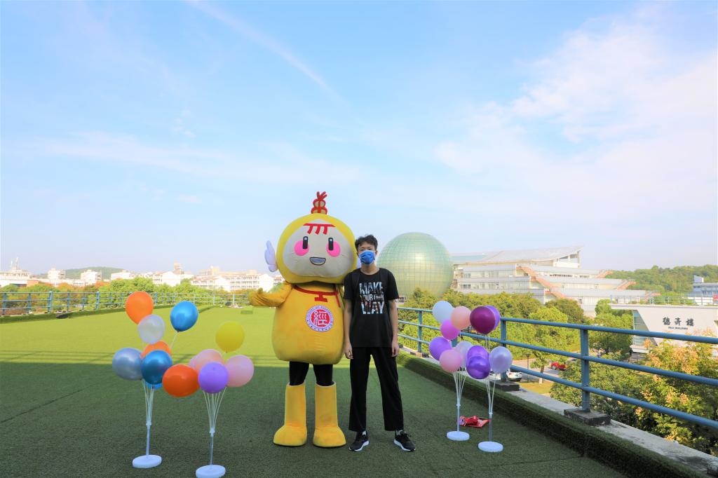 与小经灵吉祥物合影留念,愿如小经灵一样热情、善良、勇敢、上进