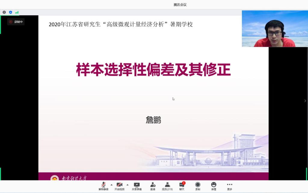 8月13日下午,永利14m在线登录官网詹鹏博士为暑期学校的学员们作了题为“样本选择性偏差及其修正”的专题讲座。