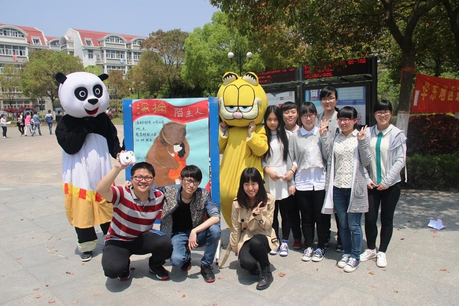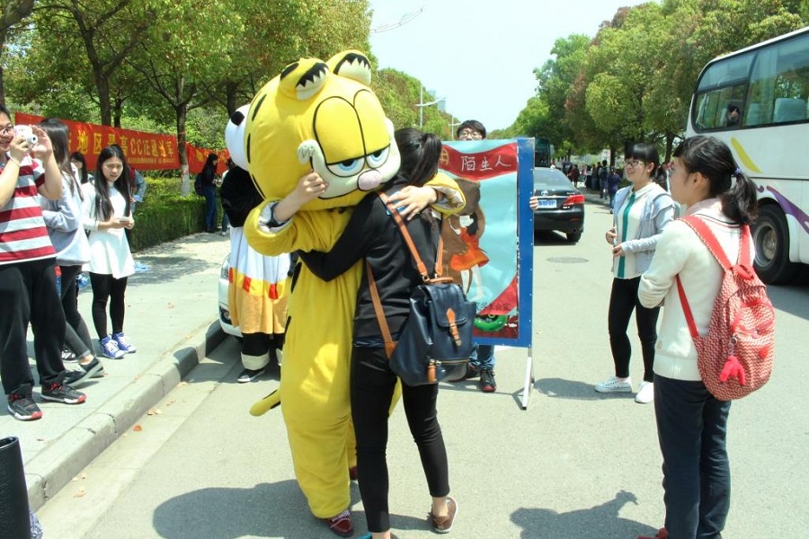 4月22日中午,由永利14m在线登录官网学生会举办的“你好,陌生人”温暖校园活动在学校西苑举行。穿戴可爱玩偶服的志愿者们举着“亲,来抱抱吧”和“我可以抱你吗?”的牌子,给来往的同学们送上拥抱。一个个温暖的拥抱,让情感在彼此间传递。